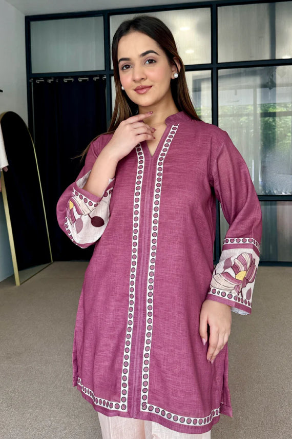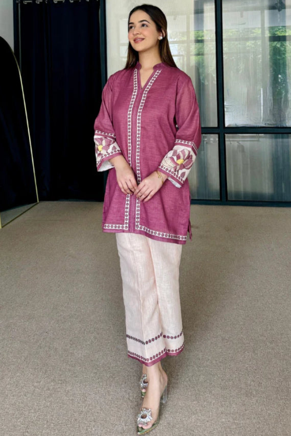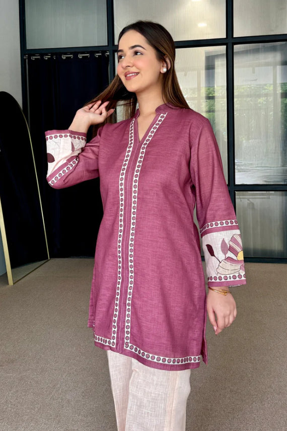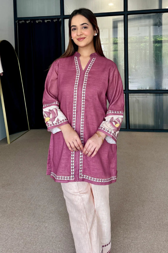 Wine Mauve Artisan Print Cotton Kurta Pant Set